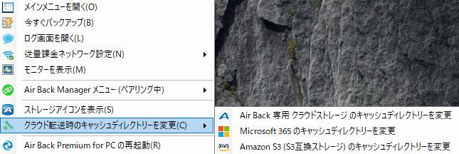 詳しくは『Air Back ユーザーズマニュアル』P.143「クラウド転送キャッシュディレクトリーの変更」をご確認ください。